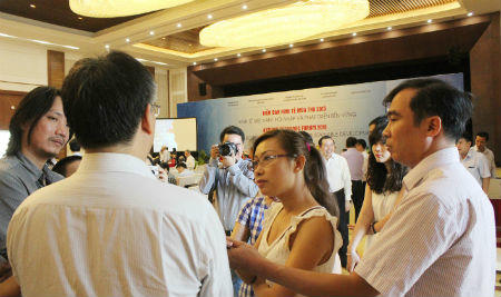 Bên lề Diễn đàn, tại hành lang Hội trường Trung tâm Hội nghị Quốc tế FLC Sầm Sơn, các đại biểu và diễn giả cũng tranh thủ trao đổi chuyên môn và trả lời phỏng vấn báo chí.