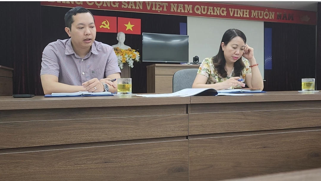 Phó giám đốc Điện lực Đan Phượng (bên trái) làm việc với PV Báo Pháp luật Việt Nam |
