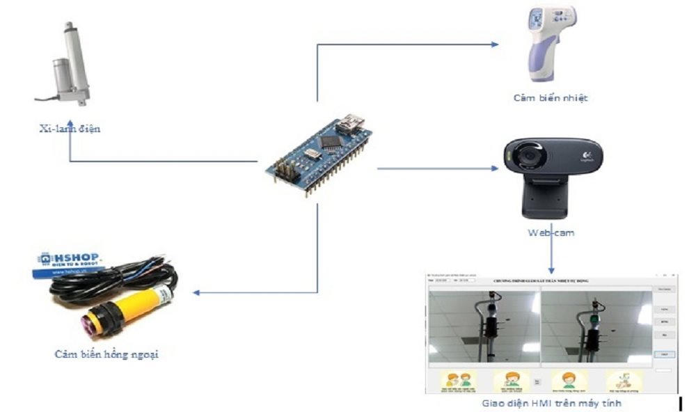 Theo PC Thừa Thiên - Huế, máy này được thiết kế gồm: súng bắn nhiệt độ gắn kèm cảm biến khoảng cách được bố trí trên xi-lanh điện để điều chỉnh lên xuống cho phù hợp với chiều cao của người sử dụng, bộ điều khiển trung tâm dự vào hệ thống cảm biến để nhận biết có người cần đo, điều khiển xi-lanh điện đến chiều cao phù hợp và điều khiển súng đo thân nhiệt để đo nhiệt độ cơ thể. Đối với người có thân nhiệt bất thường, máy sẽ phát ra âm thanh để cảnh báo.