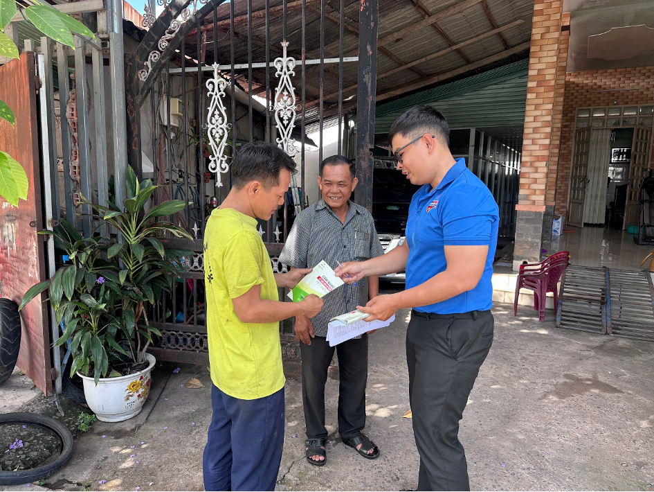 | Đoàn thanh niên ngành điện phát tờ cẩm nang sử dụng điện an toàn đến hộ gia đình. |