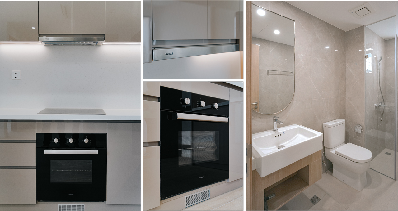 Toàn bộ nội thất trong căn hộ cũng được Masterise Homes lựa chọn tỉ mỉ, nhập khẩu từ các thương hiệu nổi tiếng trên thế giới như Hafele, Kohler, Gessi… và đặc biệt là hệ tủ bếp hoàn thiện. Nhận tổ ấm mới với đầy đủ nội thất liền tường, cư dân có thể dọn vào ở ngay mà không phải lo nghĩ chi phí đầu tư, tiết kiệm thời gian và công sức.