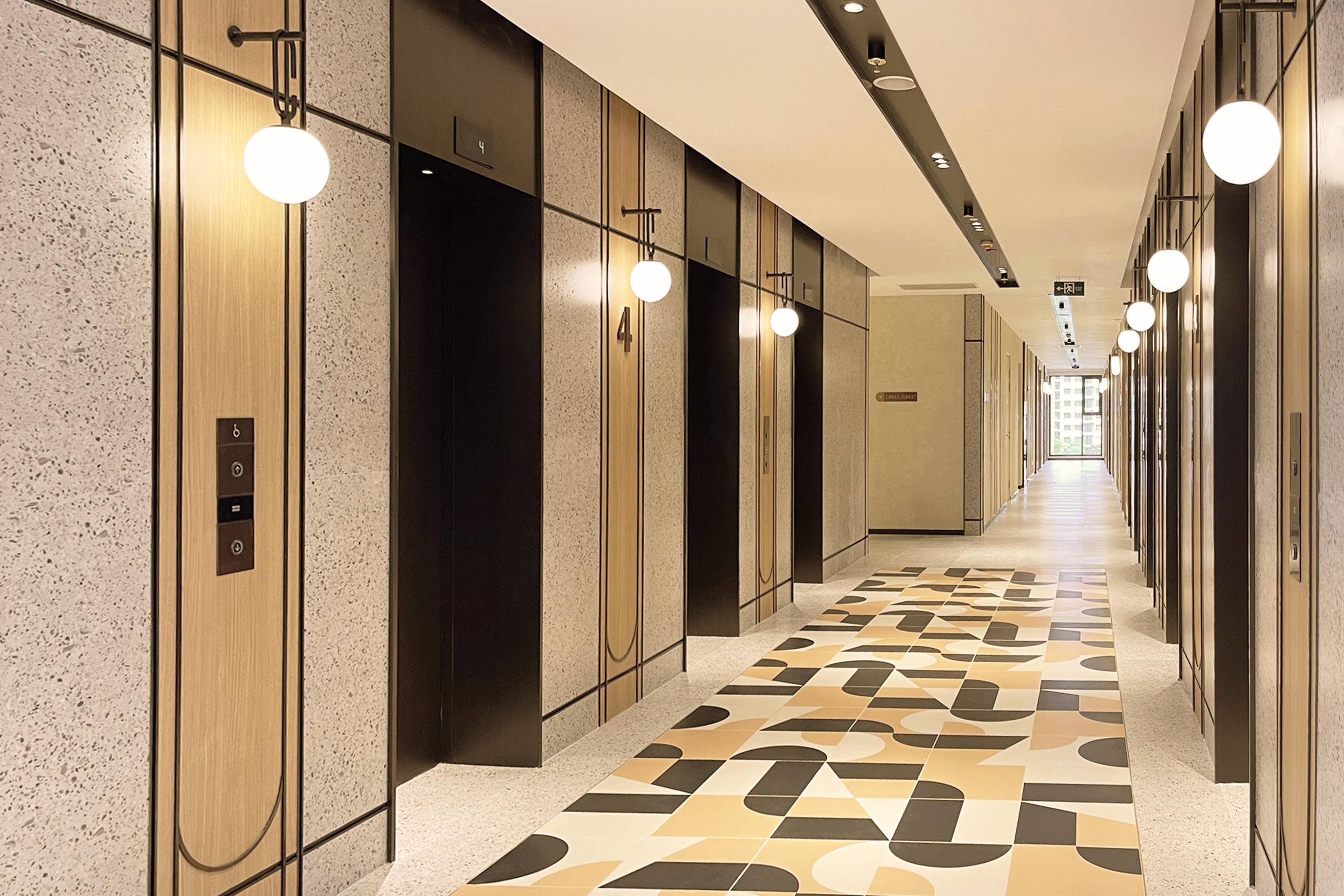 Sảnh thang máy với số lượng thang nhiều, tỷ lệ “vàng” chỉ 2 đến 2.5 căn/thang cho mỗi tầng, cư dân không phải chờ đợi. |