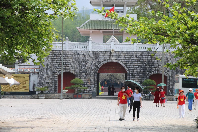Du khách đến thăm Đền thờ Liệt sỹ chiến trường Điện Biên Phủ. |