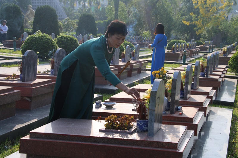 Du khách đến thắp hương tại Nghĩa trang liệt sỹ A1 để tưởng nhớ các anh hùng liệt sỹ đã hy sinh trong chiến dịch Điện Biên Phủ. |