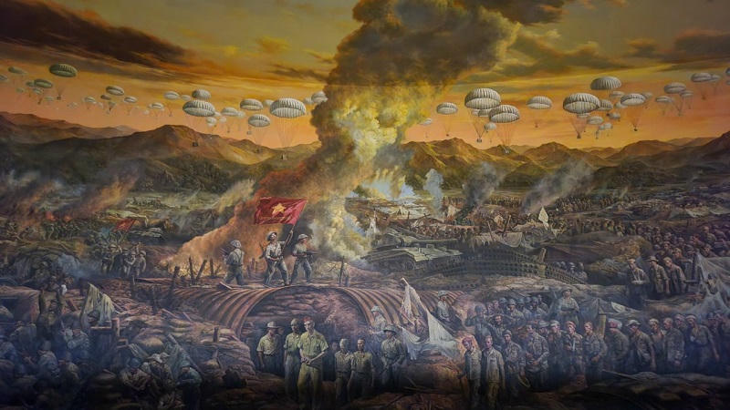 Bức tranh Panorama tại Bảo tàng chiến thắng lịch sử Điện Biên Phủ ghi lại toàn cảnh chiến dịch năm xưa. |