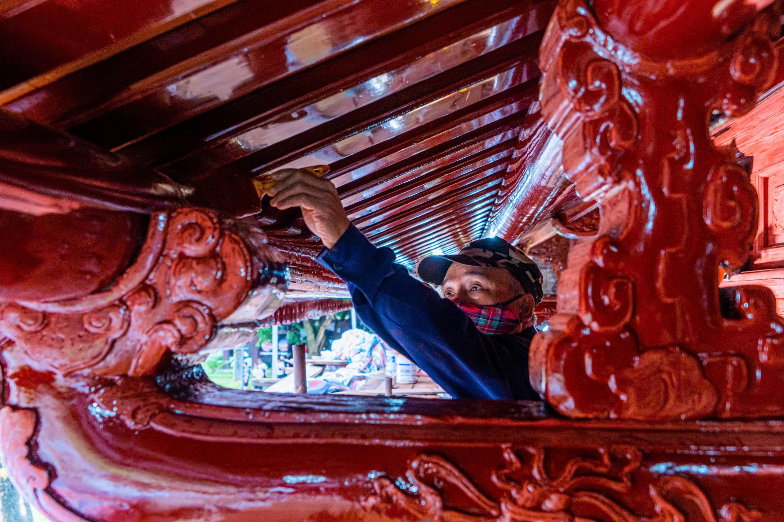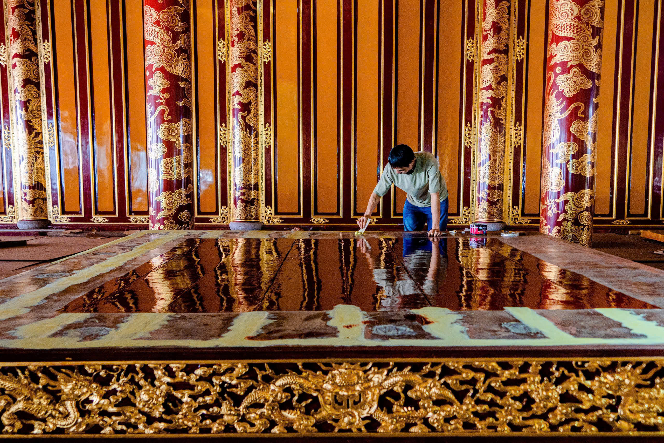 Mỗi nét vẽ, lớp vàng đều được tỉ mỉ chăm chút, mang đậm dấu ấn tinh hoa của nghệ thuật xứ Cố đô |