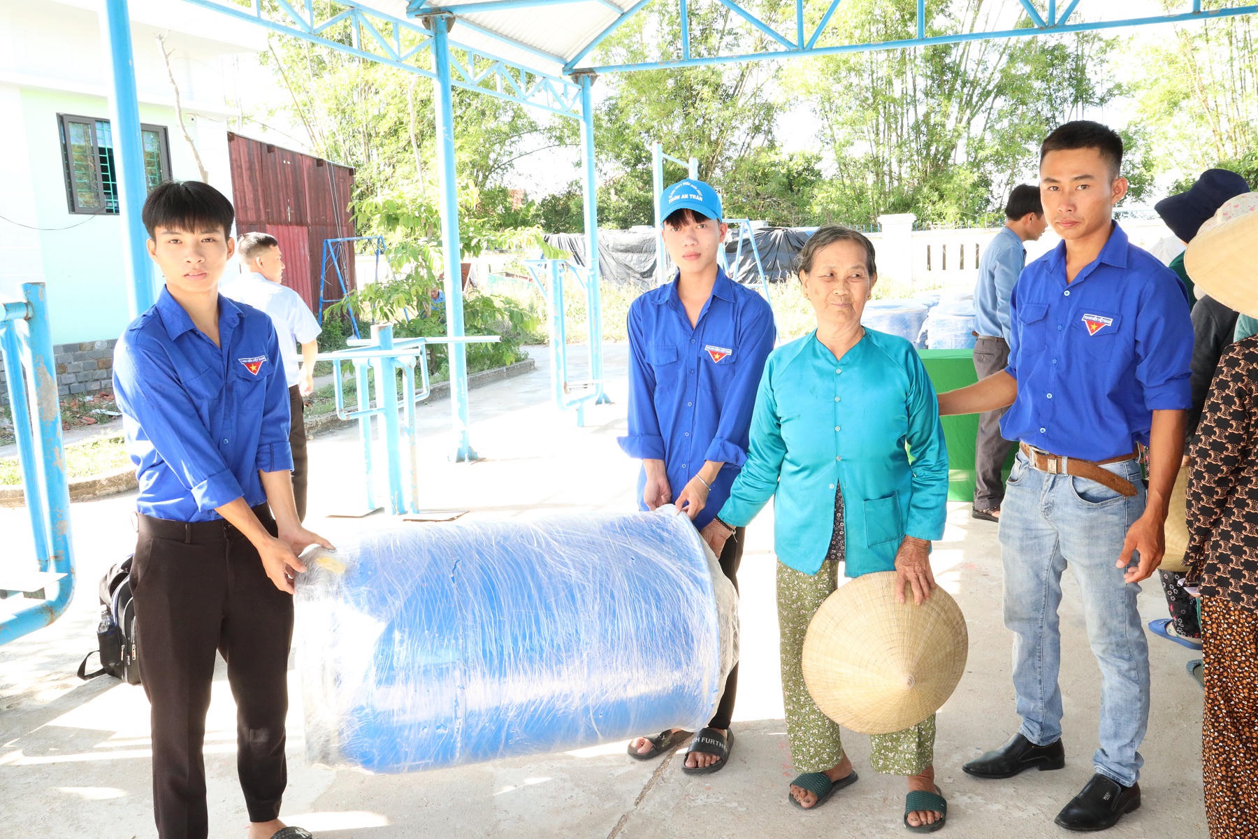 Diễn tập cấp phát 40 thùng phuy chống nước để trữ đồ có giá trị quan trọng cho 40 gia đình ở vùng trũng nhất của xã Bình Hải. |