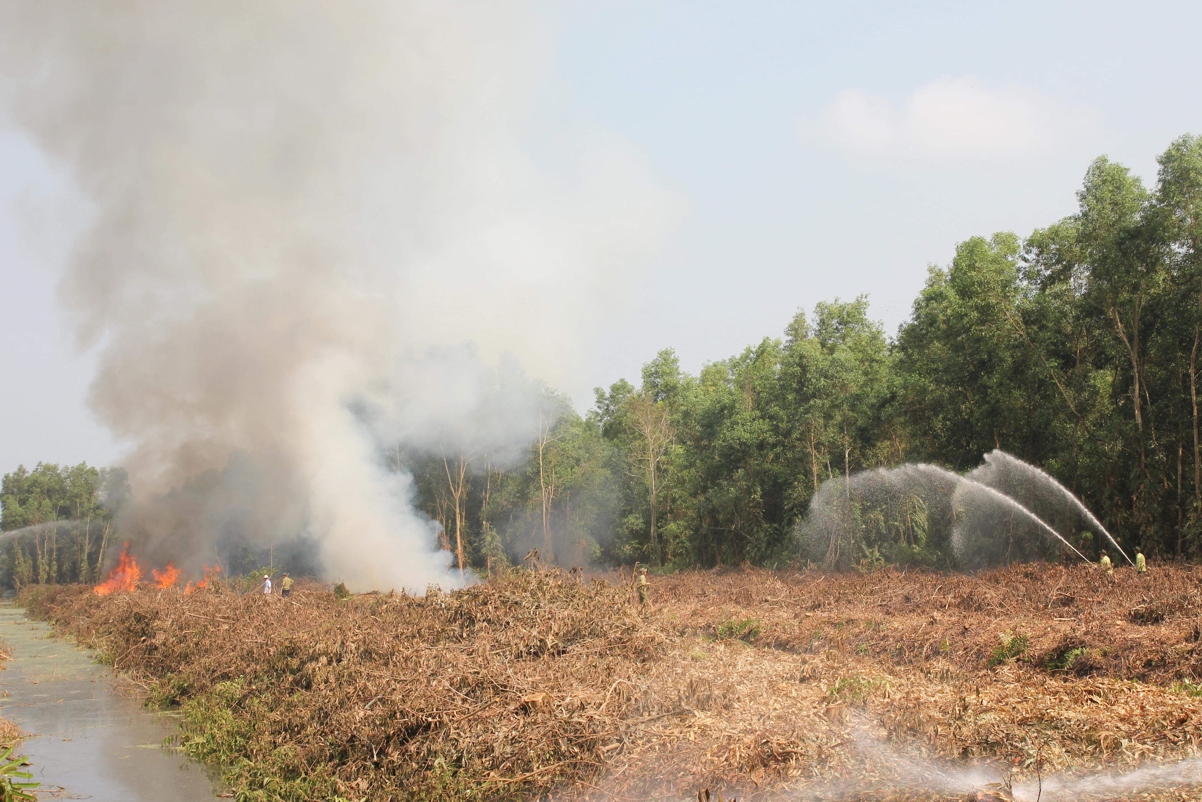 Diễn tập hiệp đồng chữa cháy rừng ở Cà Mau