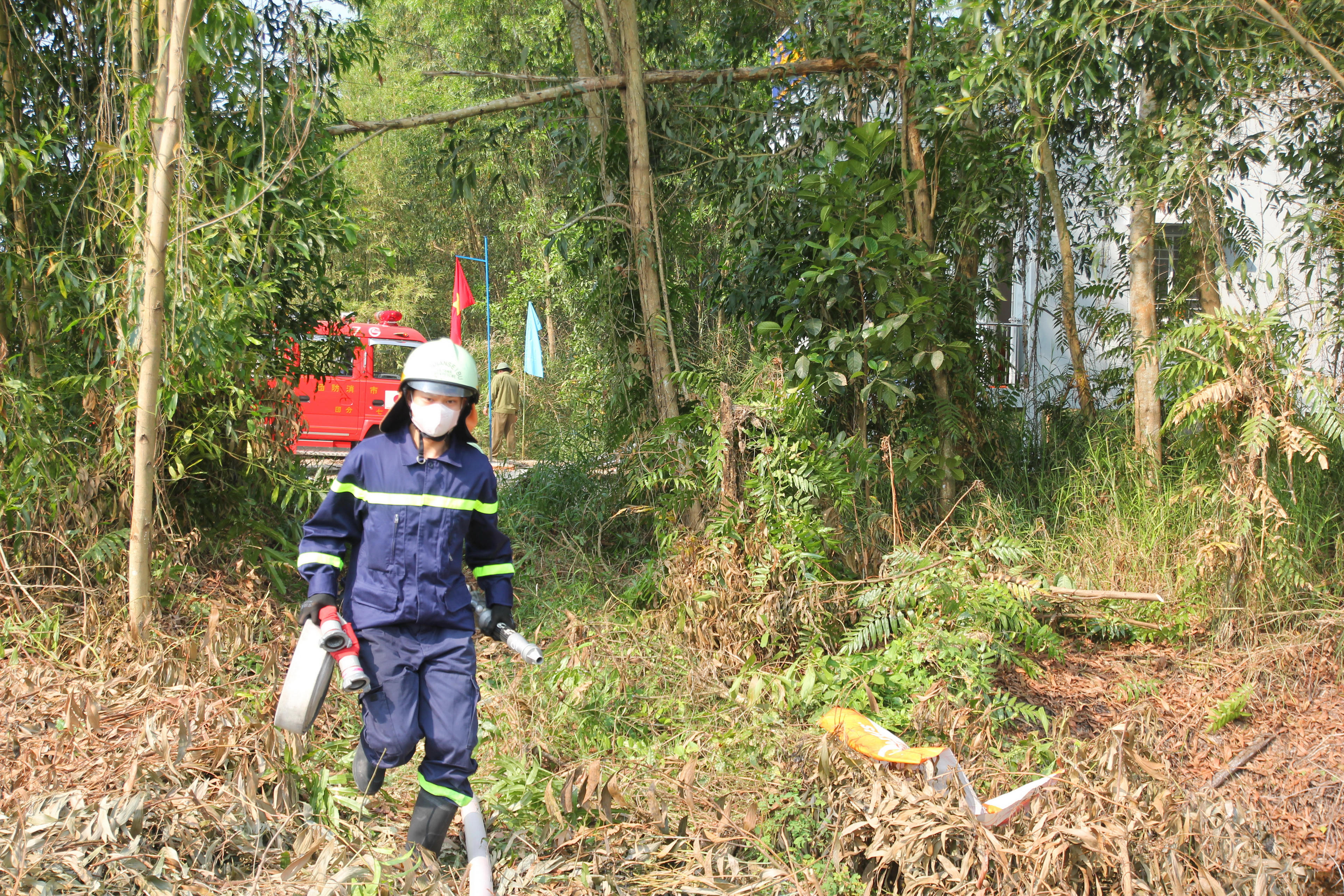 Theo tình huống giả định, lực lượng canh lửa của Công ty TNHH MTV Lâm Nghiệp U Minh Hạ quan sát phát hiện đám cháy tại khoảnh 6 - tiểu khu 006 – LTK Sông Trẹm. Nhận được thông tin, Trưởng Ban Chỉ huy Công ty đã chỉ đạo Tổ trưởng điều động ngay máy bơm chữa cháy và lực lượng tại chỗ, di chuyển luồng rừng nhanh chóng đến khu vực cháy để rà soát, xác định vị trí cháy xảy ra.