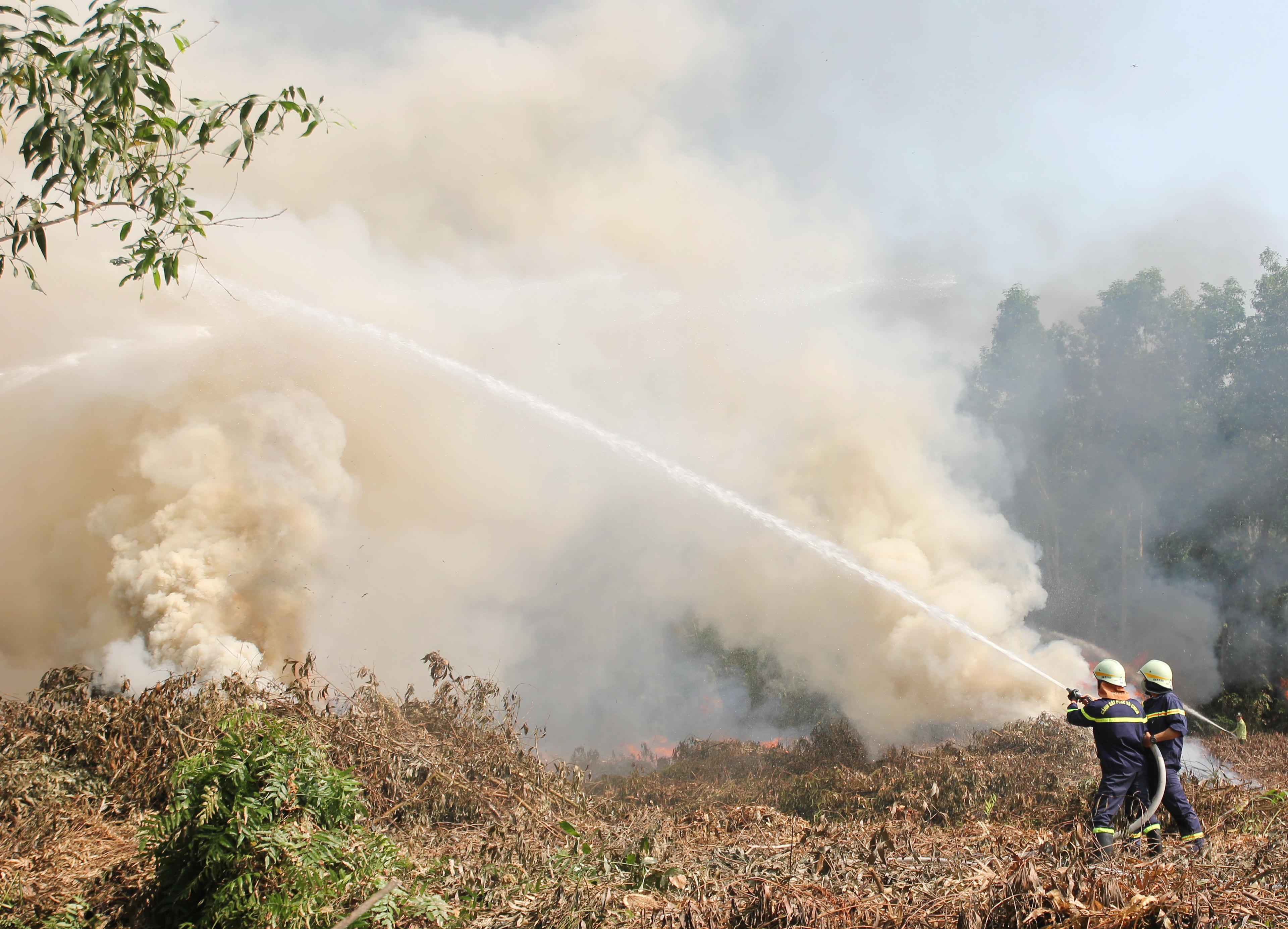 Lực lượng chữa cháy nỗ lực khống chế đám cháy. |