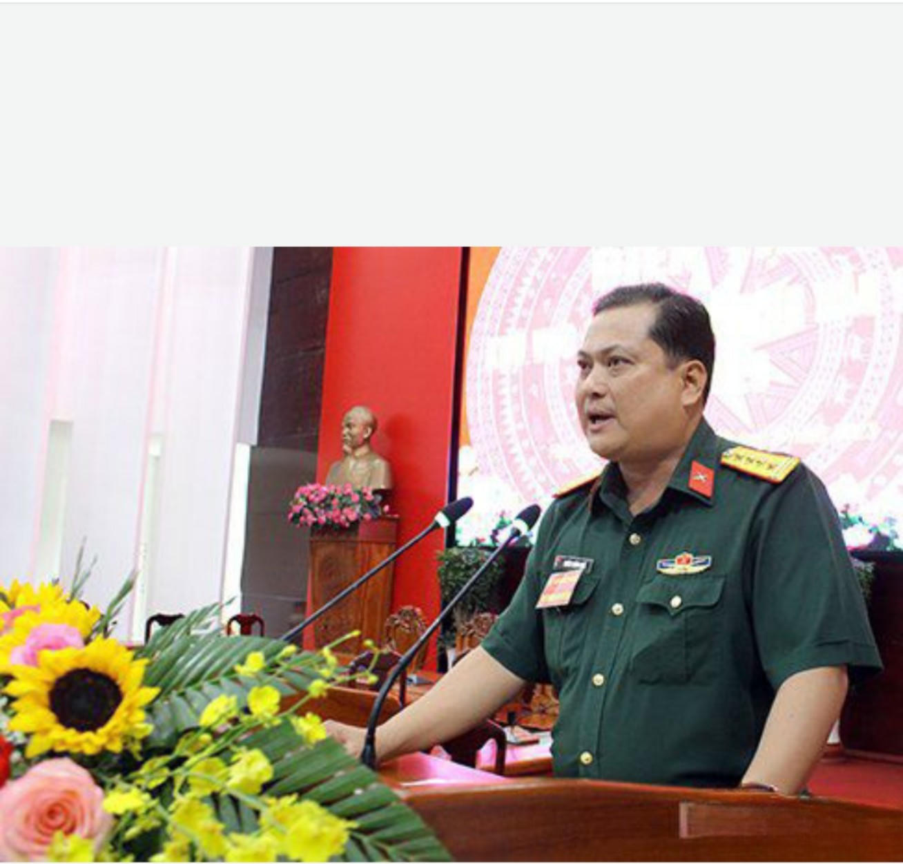 Đại tá Chiêm Thống Nhất, Phó Tư lệnh, Tham mưu trưởng Quân khu 9 phát biểu chính thức khai mạc diễn tập - Ảnh Phi Thuyền |