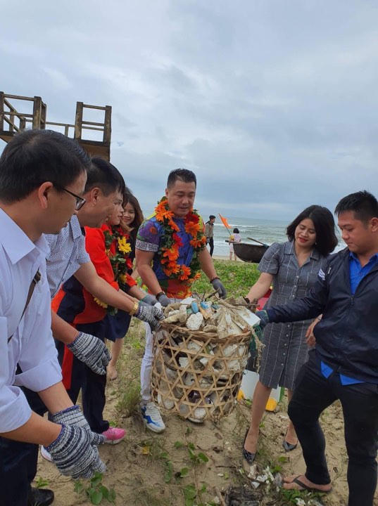 Cùng ngày, sau Chương trình phát động, hàng trăm cán bộ đoàn viên, lãnh đạo địa phương, các đại sứ chương trình đã tham gia thu gom rác tại bãi biển Hà My thuộc phường Điện Dương.