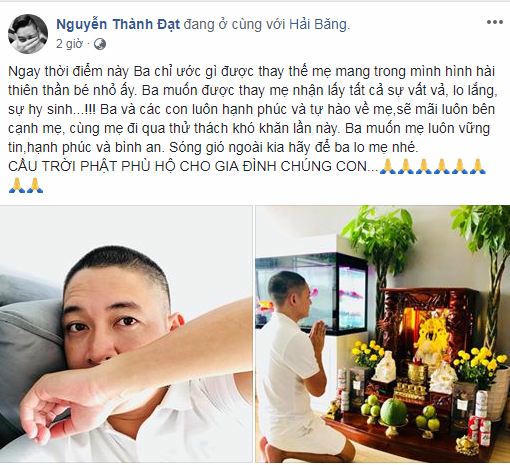 Ngay sau khi biết Hải Băng mang bầu bé thứ 3 khi vừa sinh nhóc tỳ thứ 2 được khoảng 3 tháng, nam diễn viên Thành Đạt vô cùng lo lắng. Với quyết định không phá thai, Thành Đạt đã quyết định xuống tóc để cầu bình an cho Hải Băng cùng em bé chưa sinh.