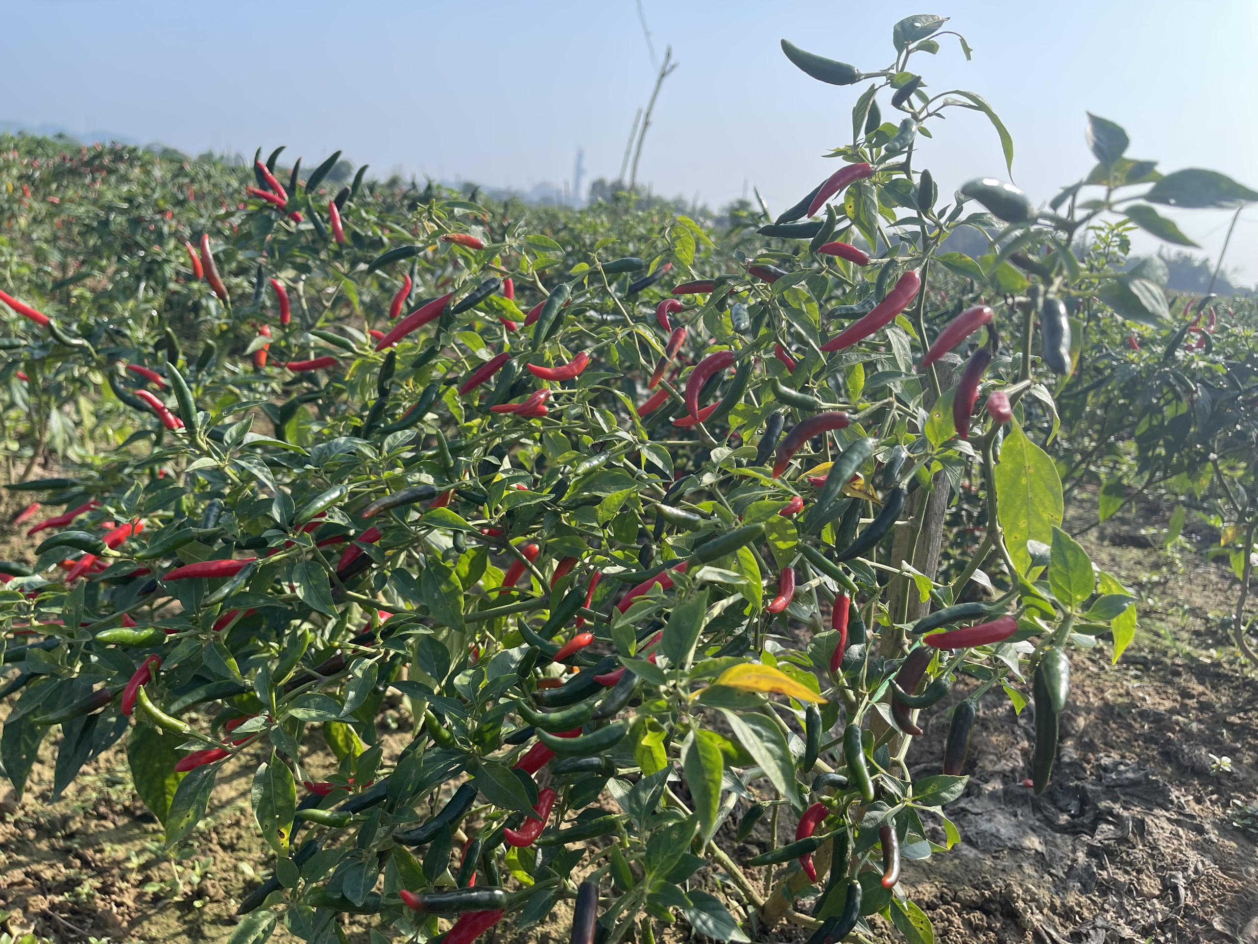 Năm nay, tại tỉnh Quảng Ngãi, địa phương trồng ớt nhiều nhất là huyện Bình Sơn với 593ha/Kế hoạch 560,5ha ớt, vượt kế hoạch hơn 30ha. Cây ớt được trồng chủ yếu ở xã Bình Dương (trên 135ha), còn lại phân bố rải rác ở các xã ven sông Trà Bồng như Bình Minh, thị trấn Châu Ổ, Bình Chương và Bình Long,…