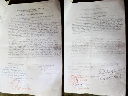 Đến năm 1995, qua nhiều lần tới lui, ông cụ mới được hướng dẫn làm hồ sơ xác nhận người có công, nhưng sau đó xã lại trả lời “hồ sơ không đủ điều kiện giải quyết”.