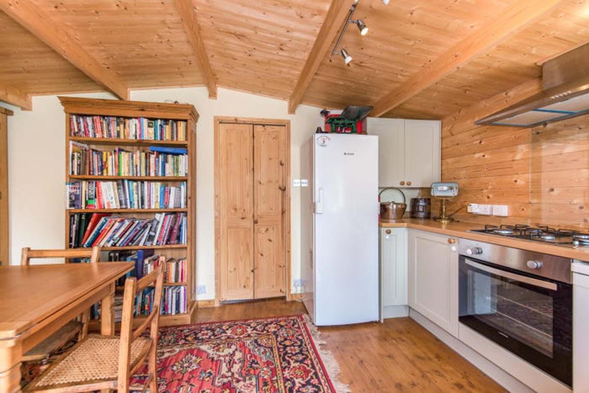 Nhà phụ tuy rộng 4,79 m nhưng có đủ công năng để ở với một gian bếp và một phòng tắm. Nội thất tuy đơn giản nhưng vẫn là một căn phòng hoàn hảo dành cho khách.
