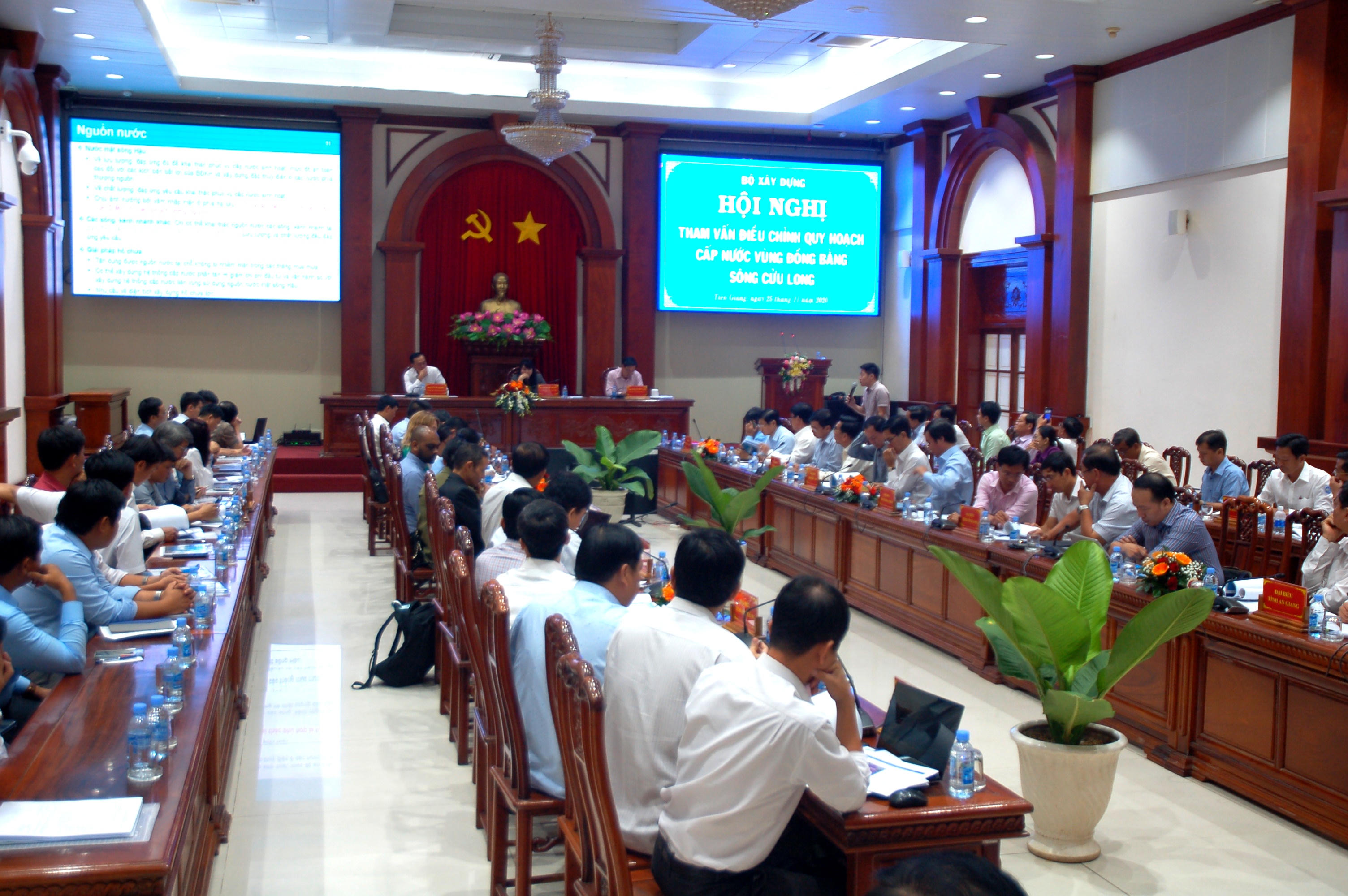 (PLVN) - Ngày 25/11, tại Tiền Giang, Bộ Xây dựng phối hợp với UBND tỉnh tổ chức Hội nghị Tham vấn điều chỉnh Quy hoạch cấp nước vùng đồng bằng sông Cửu Long (ĐBSCL). Đại diện các bộ, ngành, các chuyên gia, hội nghề nghiệp và 13 tỉnh vùng ĐBSCL đến tham dự.