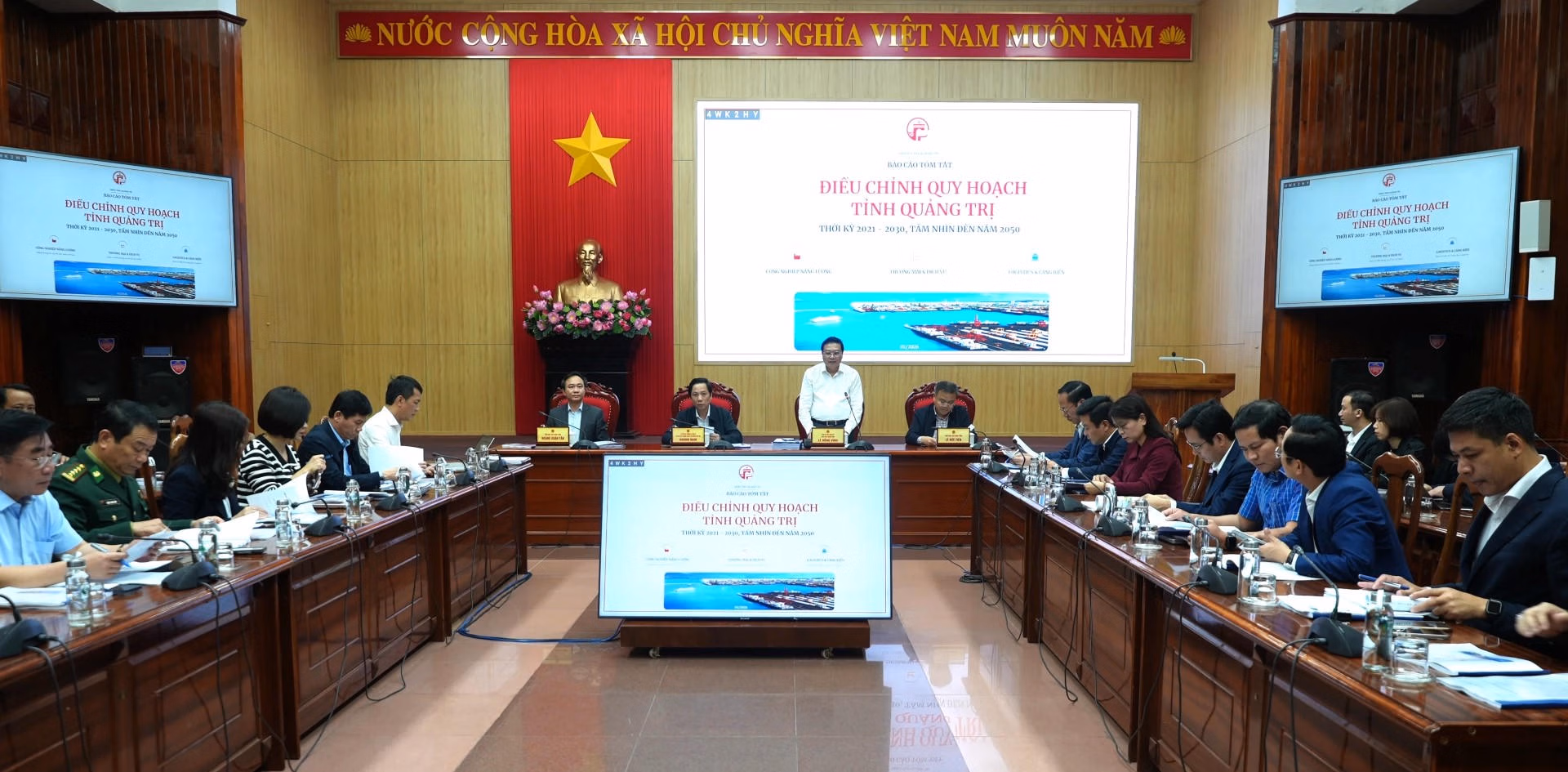 Chiều 27/1, UBND tỉnh Quảng Trị tổ chức cuộc họp nghe báo cáo hồ sơ điều chỉnh Quy hoạch tỉnh thời kỳ 2021-2030, tầm nhìn đến năm 2050 (lần 2). Cuộc họp do Chủ tịch UBND tỉnh Lê Hồng Vinh chủ trì, với sự tham dự của các Phó Chủ tịch UBND tỉnh, thành viên Ban Chỉ đạo và lãnh đạo các sở, ngành liên quan.
