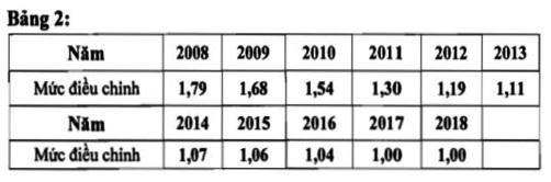 Trong đó, mức điều chỉnh thu nhập tháng đã đóng BHXH của năm tương ứng được thực hiện như sau: