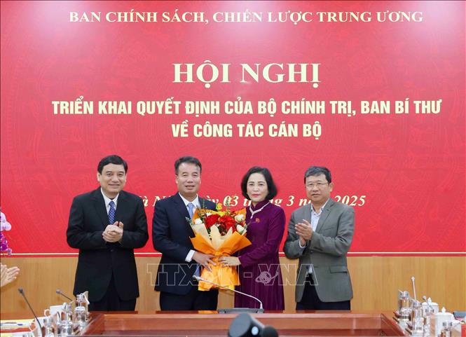 Theo Quyết định số 1961-QĐNS/TW ngày 28/2/2025, Bộ Chính trị quyết định điều động phân công, bổ nhiệm các ông/bà sau giữ chức Phó Trưởng Ban Chính sách, chiến lược Trung ương: Ông Nguyễn Hoàng Anh, Ủy viên Trung ương Đảng, nguyên Bí thư Ban cán sự Đảng, nguyên Chủ tịch Ủy ban Quản lý vốn nhà nước tại doanh nghiệp; bà Nguyễn Thúy Anh, Ủy viên Trung ương Đảng, nguyên Ủy viên Đảng đoàn Quốc hội, nguyên Ủy viên Ủy ban Thường vụ Quốc hội, nguyên Chủ nhiệm Ủy ban Xã hội của Quốc hội.