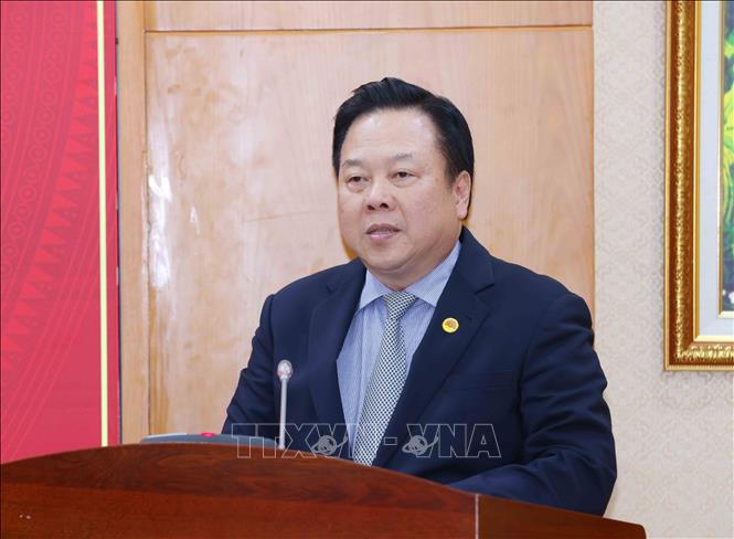 Đồng chí Trần Lưu Quang, Bí thư Trung ương Đảng, Trưởng Ban Chính sách, chiến lược Trung ương phát biểu tại hội nghị. Ảnh: Phương Hoa/TTXVN.