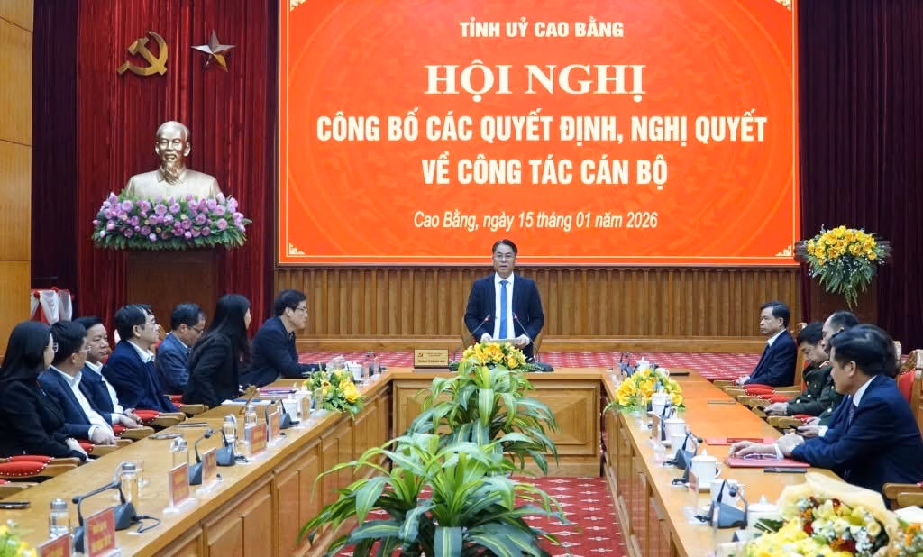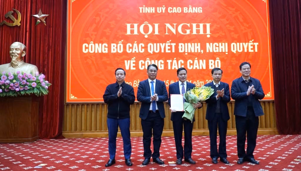 Chiều 15/1, Tỉnh ủy và UBND tỉnh Cao Bằng tổ chức Hội nghị công bố các quyết định về công tác cán bộ.Tại hội nghị, lãnh đạo Ban Tổ chức Tỉnh ủy công bố các quyết định của Ban Thường vụ Tỉnh ủy về việc điều động, phân công và giới thiệu nhân sự lãnh đạo tại một số cơ quan, đơn vị.