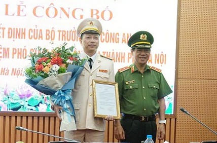 | Giám đốc Công an tỉnh Bắc Giang Nguyễn Quốc Toản trao quyết định cho Thượng tá Nguyễn Văn Duân. |