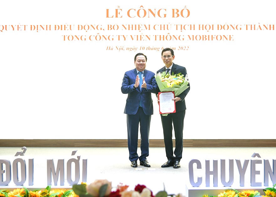 Trước khi nhận chức Chủ tịch MobiFone, ông Nguyễn Hồng Hiển (bìa phải) là Vụ trưởng Vụ Công nghệ & Hạ tầng. |