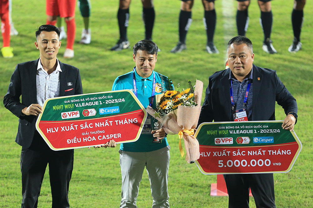 HLV Vũ Hồng Việt nhận giải “HLV xuất sắc nhất tháng”. ảnh VPF