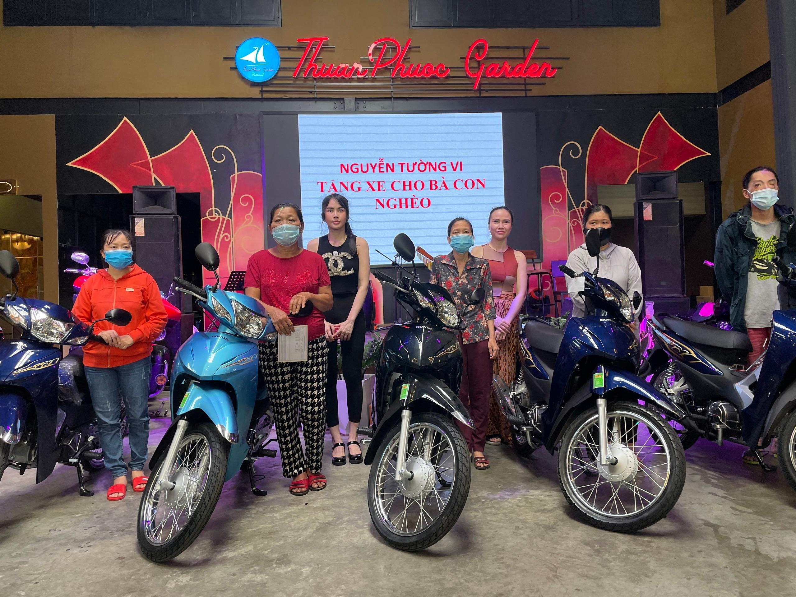 Anh Trần Hoàng Vương, chủ nhóm thiện nguyện Team 44 cho biết, 5 chiếc xe dành tặng cho người nghèo khó ở Đà Nẵng đều do chị Nguyễn Tường Vi (ở phường Hòa Thuận Tây, quận Hải Châu, Đà Nẵng) mua. Trước đó, Vi cũng đã tặng 3 chiếc xe khác. Điều đặc biệt, số tiền 100 triệu đồng, Vi được mẹ cho để tổ chức tiệc sinh nhật. Tuy nhiên, năm nay, thay vì làm linh đình để tụ tập cùng bạn bè, cô gái dành toàn bộ số tiền để cùng các bạn trong nhóm thiện nguyện "Team 44" tặng 5 xe máy và tiền mặt giúp đỡ cho những hoàn cảnh tàn tật và khó khăn do dịch COVID-19 trên địa bàn TP. Đà Nẵng.