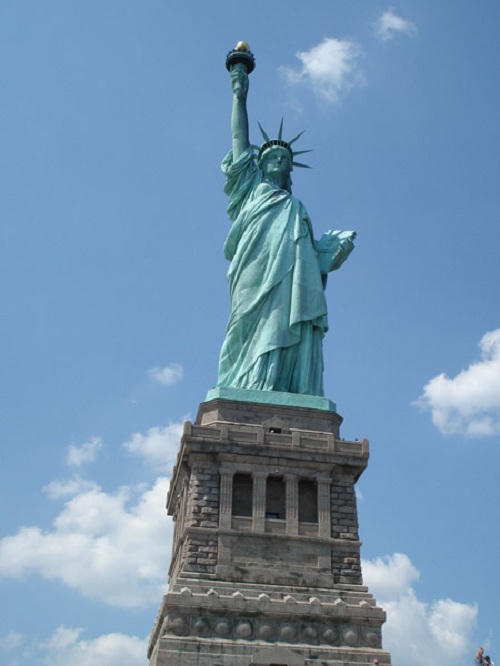 Đối với những người nhập cư đến Mỹ để tìm kiếm một cuộc sống tốt đẹp hơn, điều đầu tiên họ nhìn thấy là tác phẩm điêu khắc với chiều cao 151 ft tại Đảo Liberty. Tác phẩm là một món quà của Pháp gửi tặng Mỹ, do Gustave Eiffel - người mà sau này đã thiết kế nên tháp Eiffel - xây dựng. Bức tượng nặng 204 tấn và cao 93 m. Vào năm 1984, phần đuốc của bức tượng đã thay bằng vàng 24k.