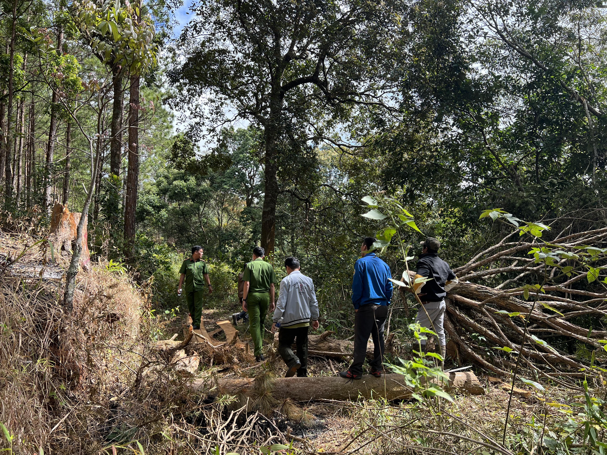 Cơ quan CSĐT tại hiện trường vụ phá rừng. |