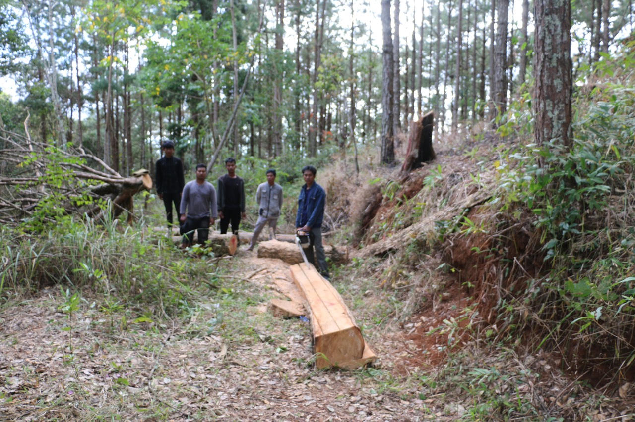 Sau khi tìm chỗ nấu ăn, ngủ lại qua đêm, nhóm đối tượng vào khu vực rừng già tìm cây để cưa, cây gỗ sau khi đổ được cắt khúc và xẻ từng thành hộp. Khi xẻ xong được 1 hộp cây Tùng Du Sam thì nhóm người bị lực lượng chức năng phát hiện nên bỏ chạy. Hiện sự việc đang được tiếp tục xử lý theo quy định pháp luật.