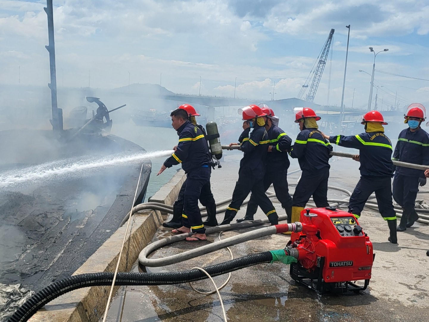 Theo thông tin ban đầu, khoảng 12h ngày 30/7, người dân phát hiện 1 trong 4 tàu cá của ngư dân huyện Ninh Hải và huyện Thuận Nam (tỉnh Ninh Thuận) đang neo đậu tại cảng cá Ninh Chữ (thuộc xã Tri Hải, huyện Ninh Hải) bất ngờ bốc khói mù mịt.
