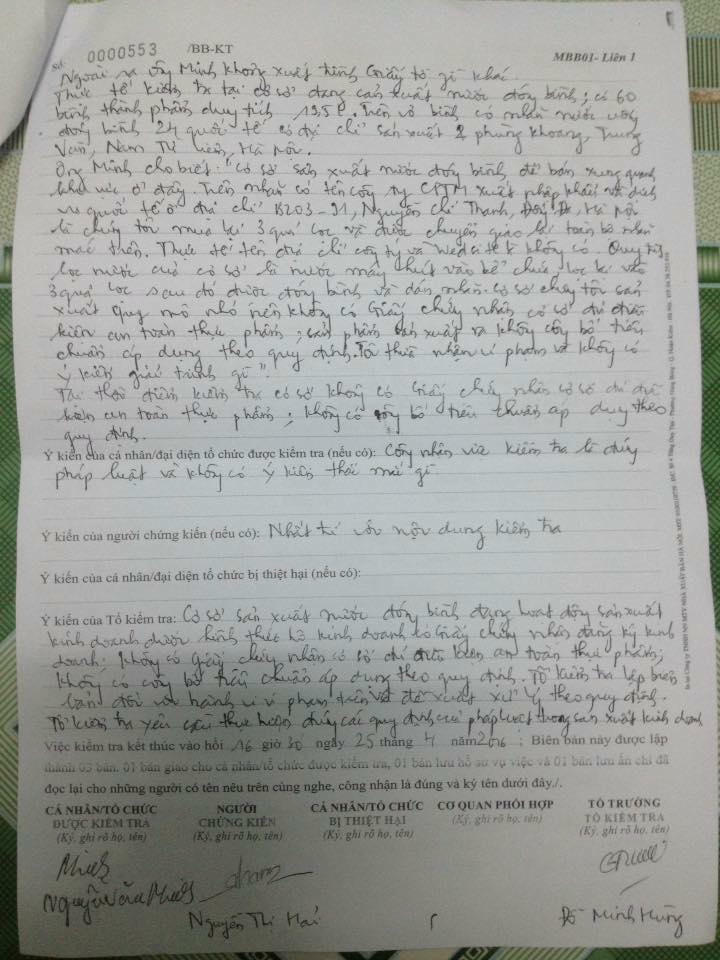 (PLO) - Chiều ngày 26/4/2016 sau khi tiếp nhận thông tin từ PV báo PLVN, Đội Quản lí thị trường số 6 thuộc chi cục quản lí thị trường Hà Nội, đã tiến hành kiểm tra đột xuất và phát hiện ra nhiều sai phạm của cơ sở sản xuất nước đóng bình "24h quốc tế'' tại Phùng Khoang, Trung Văn, quận Nam Từ Liêm.