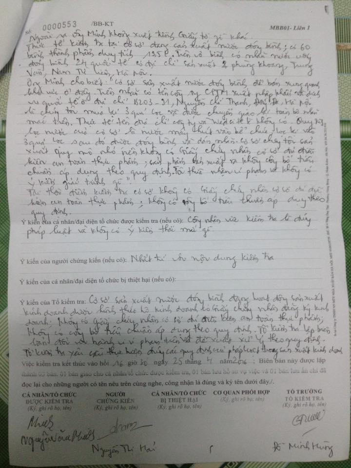 Qua kiểm tra, xác minh cơ sở sản xuất nước đóng bình 24h quốc tế là cơ sở sản xuất theo mô hình hộ kinh doanh, không phải là cơ sở sản xuất của công ty 24h quốc tế như trên bao bì sản phẩm. Chủ cơ sở sản xuất nước đóng bình này là ông Nguyễn Văn Minh đã lấy tên của công ty Cổ phần thương mại dịch vụ xuất nhập khẩu 24h Quốc tế và địa chỉ trên nhãn sản phẩm đều không đúng với thực tế.