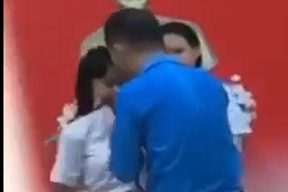 Thầy tổng phụ trách đội thiếu kiểm soát, có những hành vi chưa chuẩn mực của nhà giáo. (Ảnh: Cắt từ clip) |