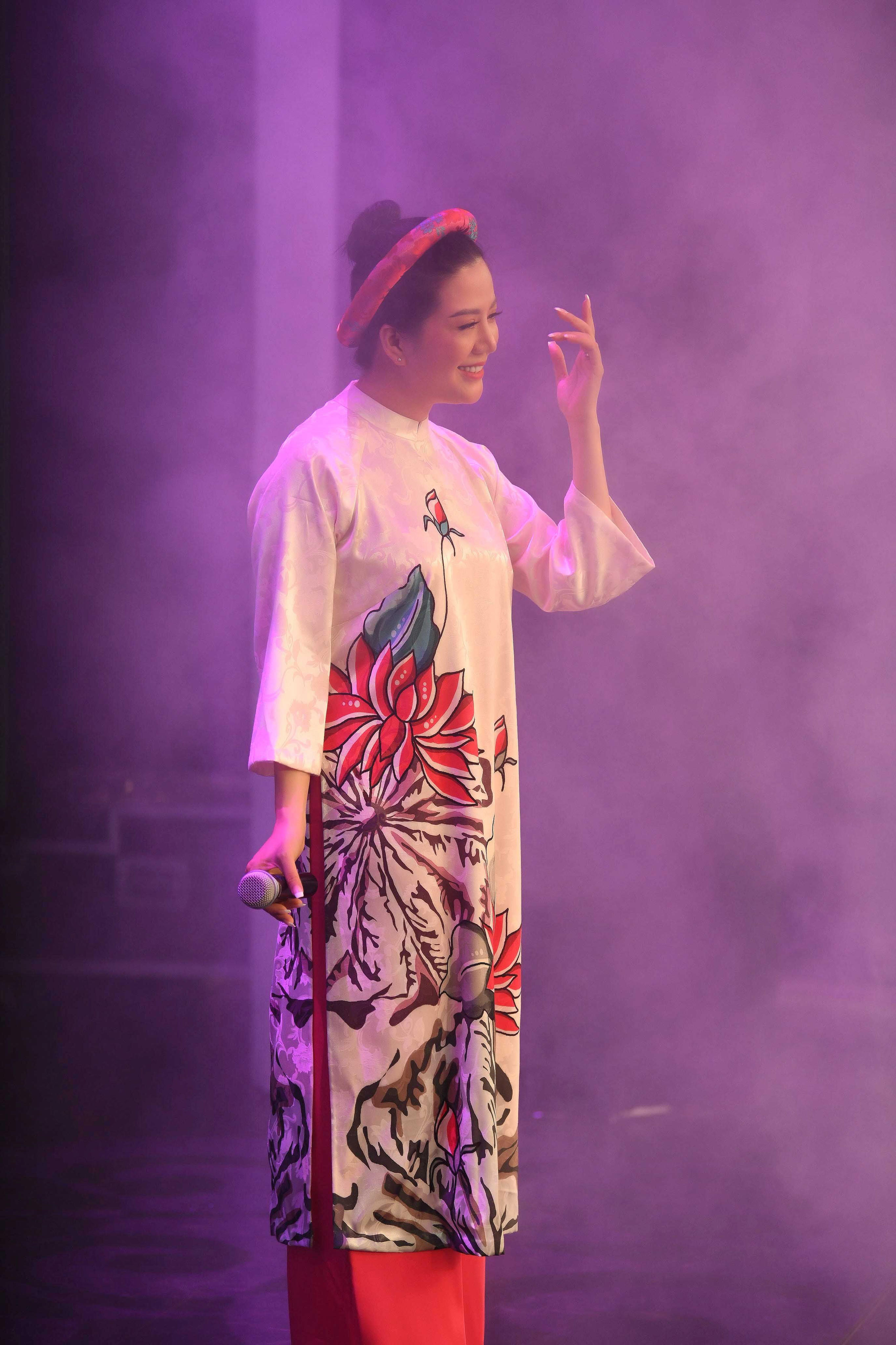 Không chỉ đứng lên kêu gọi nghệ sĩ tham gia đêm nhạc, Đinh Hiền Anh cũng góp giọng trong chương trình tối qua. Cô thể hiện hai ca khúc gồm "Lời quê" và "Đêm hát nghe đò đưa nhớ Bác".