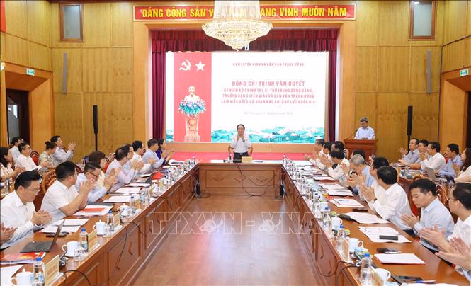 Phát biểu tại buổi làm việc, Trưởng Ban Tuyên giáo và Dân vận Trung ương Trịnh Văn Quyết chúc mừng các cơ quan báo chí truyền thông chủ lực của quốc gia là đơn vị sự nghiệp của Ban Chấp hành Trung ương Đảng. Đây là bước khởi đầu cho một giai đoạn phát triển mới; là một vinh dự rất lớn nhưng đi kèm với đó là trách nhiệm rất cao.