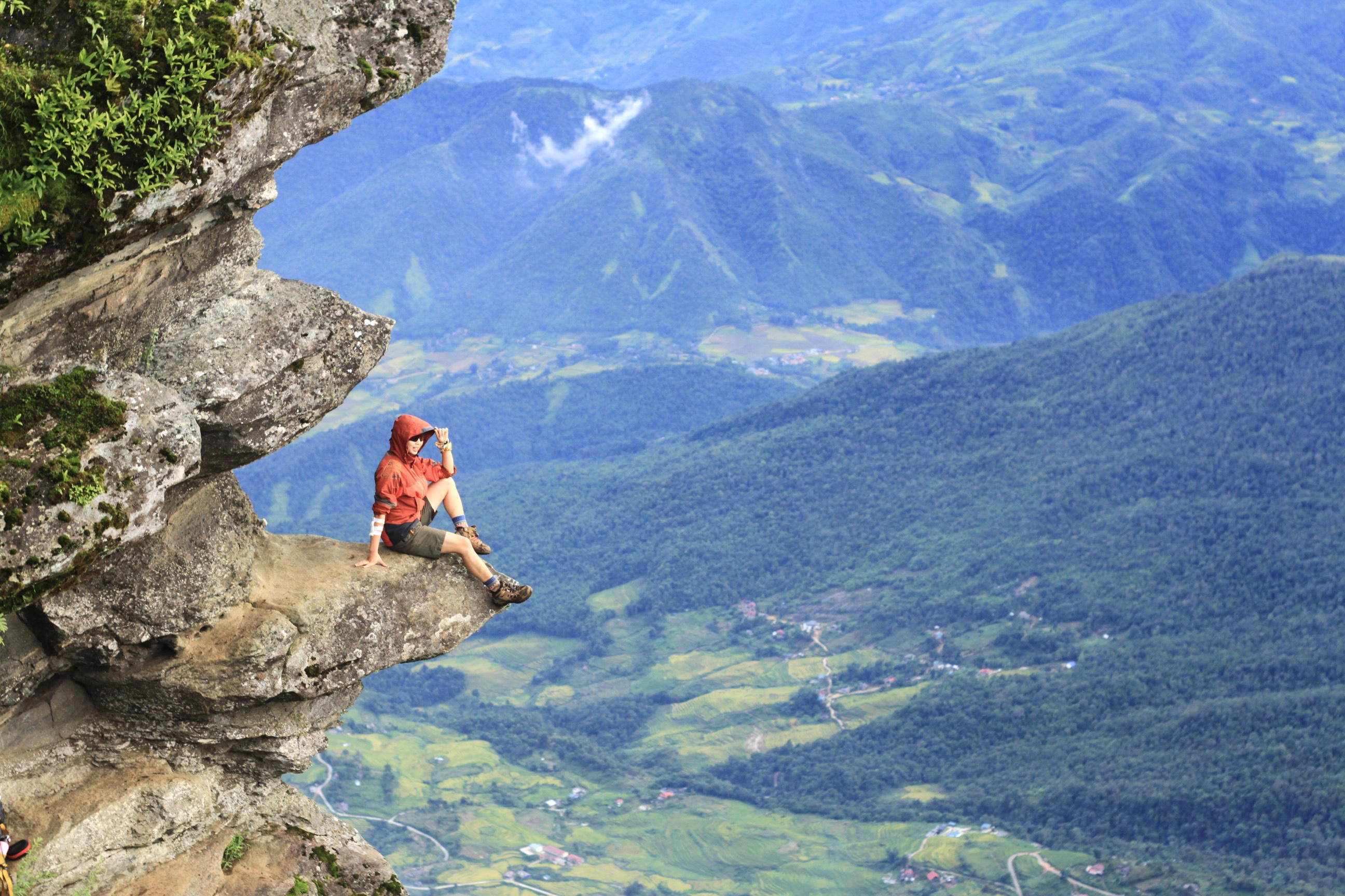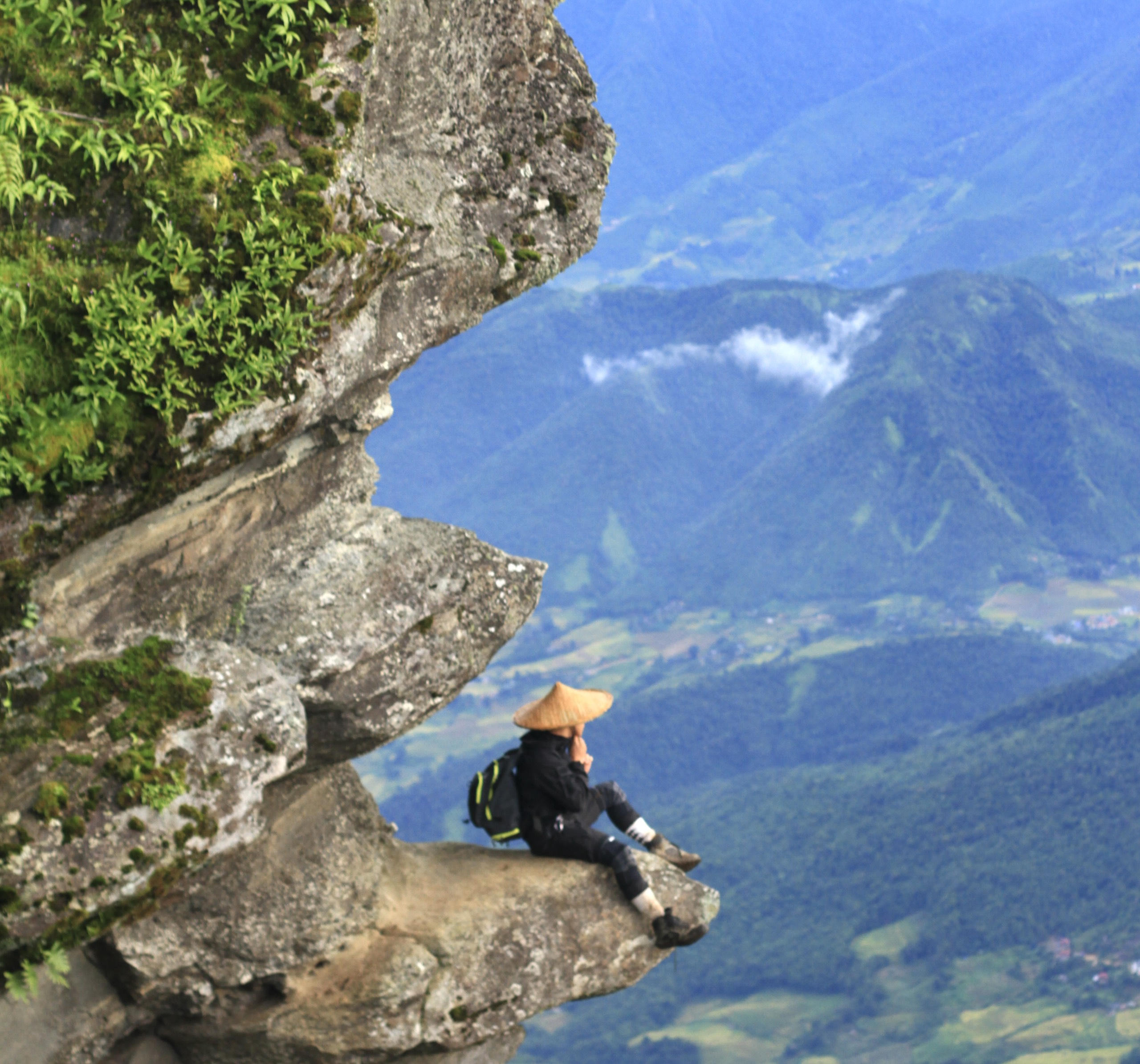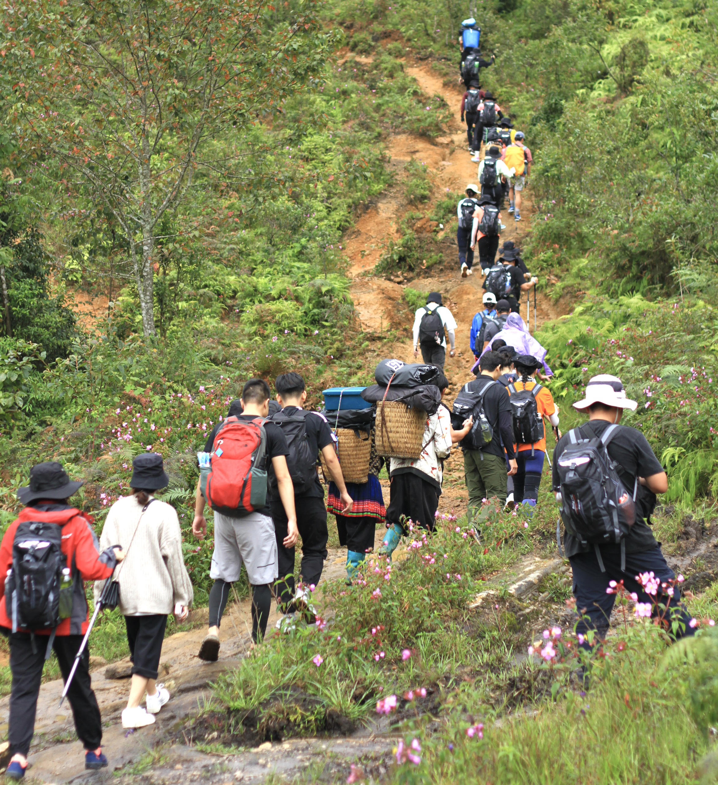 Trong khoảng 2 tiếng leo núi đầu tiên du khách phải vượt qua đoạn đường khá dốc, một số vị trí chênh vênh bên sườn núi |