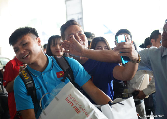 Ga đến sân bay Tân Sơn Nhất chiều 22/12 rộn ràng với sự xuất hiện của các ngôi sao U23 Việt Nam. Các cầu thủ trẻ về nước sau khi kết thúc chuyến tập huấn 10 ngày ở Busan, Hàn Quốc.