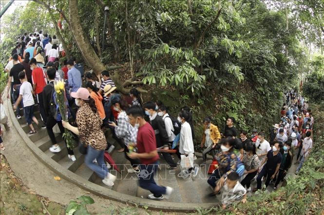 Từng dòng người đổ về dâng hương tưởng nhớ công ơn các Vua Hùng vào ngày 10/3 âm lịch. Ảnh: Minh Quyết/TTXVN