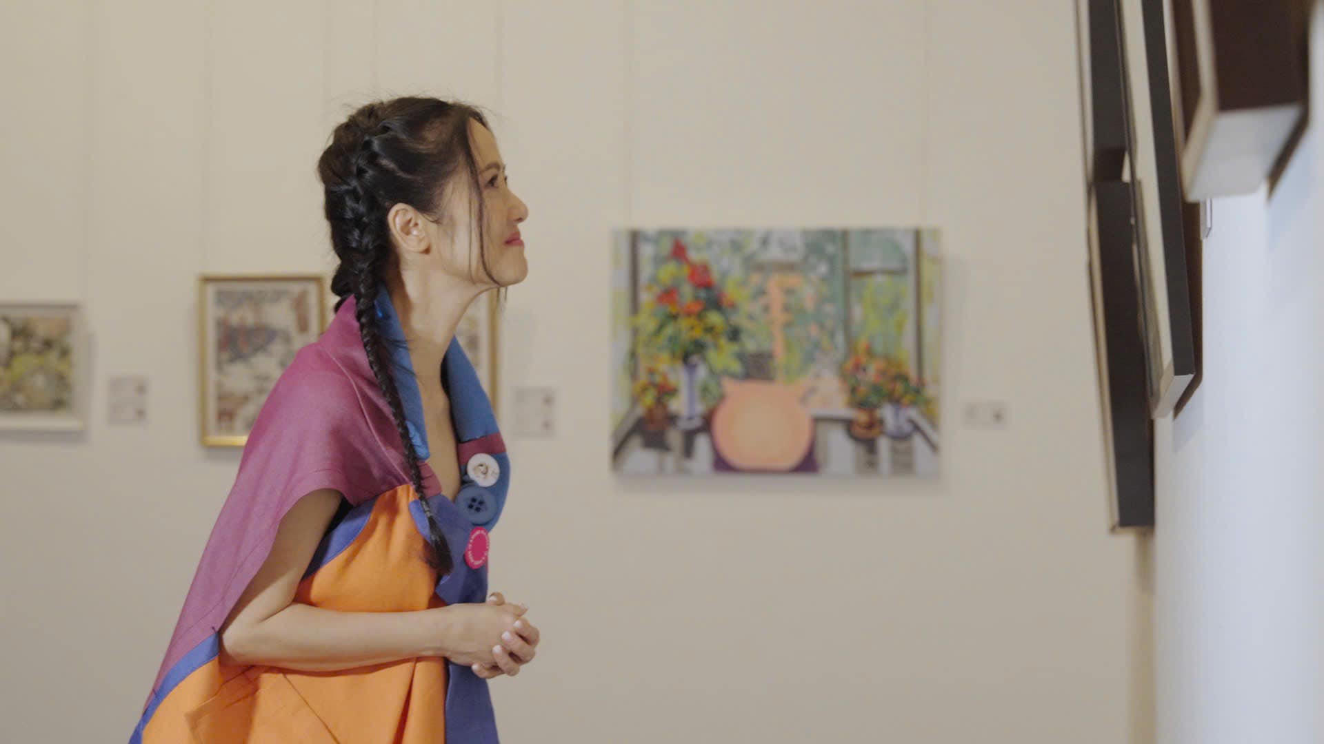 Diva Hồng Nhung ngắm nhìn tranh. |