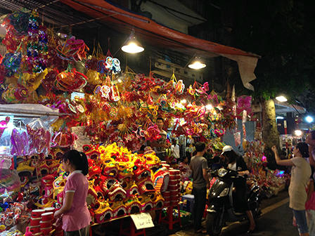 Đặc biệt là sự quay trở lại của các mặt hàng đồ chơi dân gian, với đủ loại đồ chơi như mặt nạ ông địa, đầu sư tử, đèn ông sao, đèn lồng... màu sắc rất sặc sỡ bắt mắt các “thượng đế nhí”. Giá cả phù hợp nhiều đối tượng người tiêu dùng, mỗi chiếc đèn ông sao có kích cỡ khác nhau giá dao động 15.000 – 75.000 đồng/chiếc. Đầu sư tử, đầu lân giá dao động 250.000 – 2.500.000 đồng/1 chiếc tùy vào kích thước và độ công phu của sản phẩm.