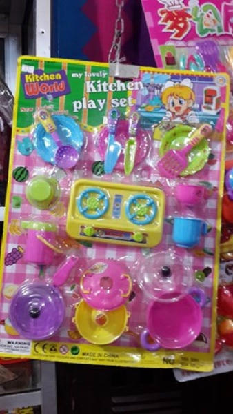 Chúng tôi chọn một bộ đồ chơi nấu ăn và gặng hỏi có loại khác không, vì lo đồ Trung Quốc độc hại không tốt, chị chủ hàng cho biết là không có, lập tức lảng đi và không bán hàng nữa.