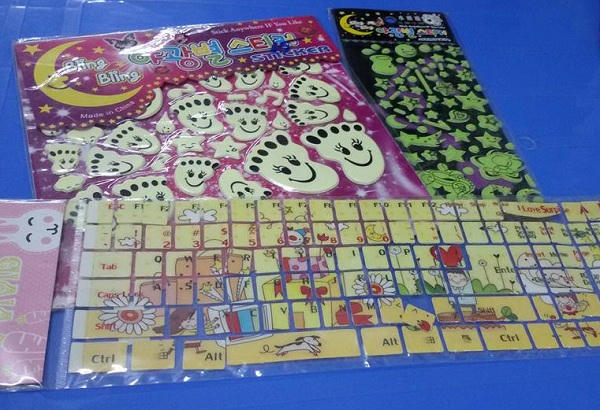 Cầm trên tay 1 xấp miếng dán “made in China” sau giờ tan học, N.N. Linh (học sinh Trường tiểu học Nghĩa Tân) cho biết: “Tập dán nhỏ chỉ 5.000 đồng, miếng dán to thì 10.000 đồng. Em mua về để dán vào hộp bút, vở với cặp sách của mình. Những miếng dán to em dán lên tủ quần áo”.