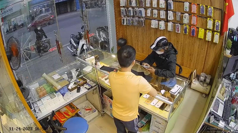 Hình ảnh được trích xuất từ Camera an ninh tại quầy bán điện thoại trên địa bàn thị trấn Gia Lộc, huyện Gia Lộc |