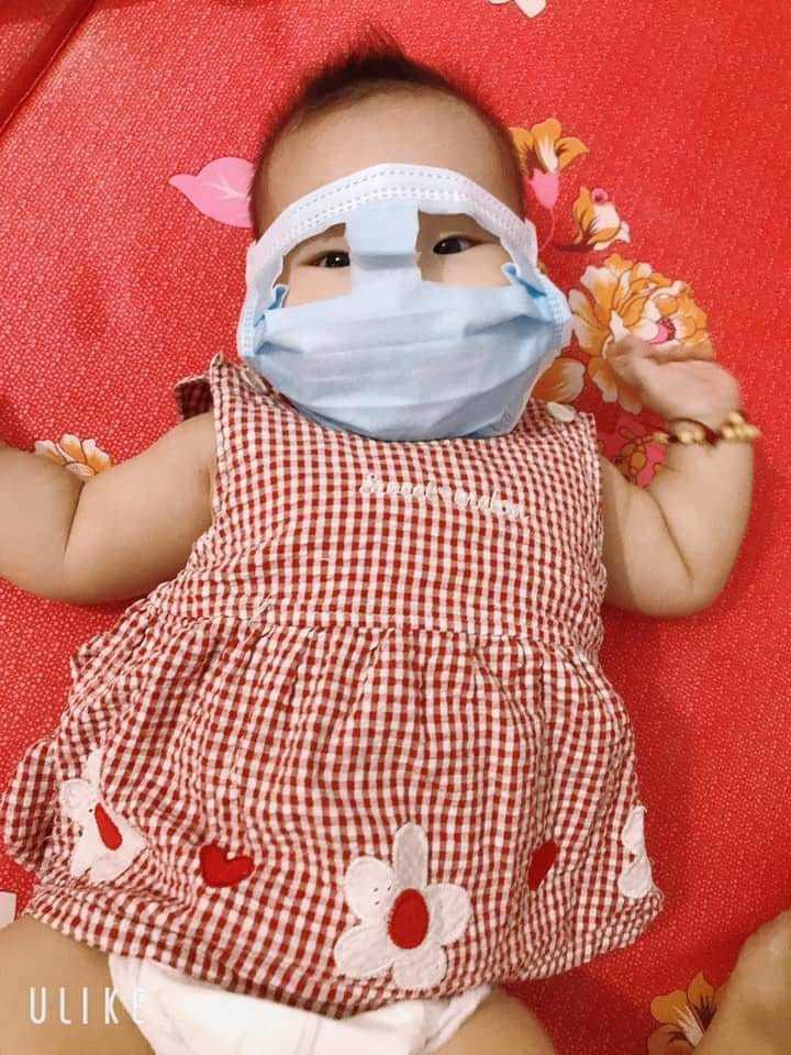 Nhân vật chính trong ảnh là một em bé được bịt mặt bằng khẩu trang y tế, chỉ chừa lại đôi mắt đang ngồi trong lòng mẹ và được bác sĩ kiểm tra. Nhìn cách em bé ngửa đầu ngơ ngác như không hiểu có chuyện gì xảy ra đã thu hút tới hơn 24 nghìn lượt yêu thích.