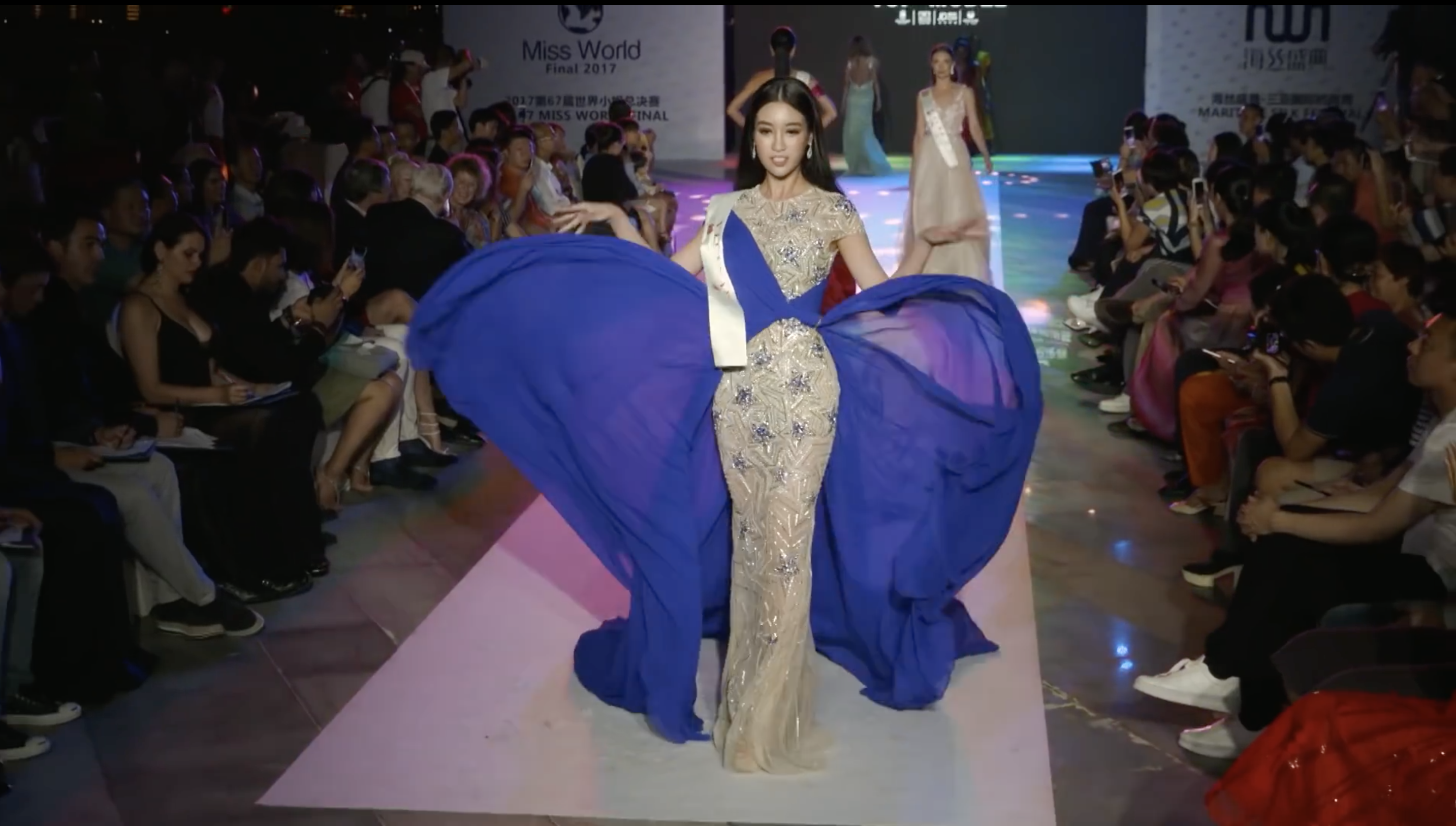Trong đoạn clip, Hoa hậu Việt Nam 2016 Đỗ Mỹ Linh xuất hiện thật kiêu sa và thể hiện màn tung váy đỉnh cao trong phần thi Top Model.