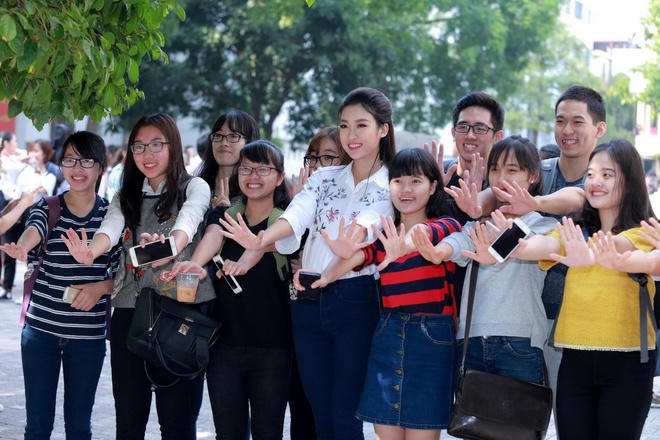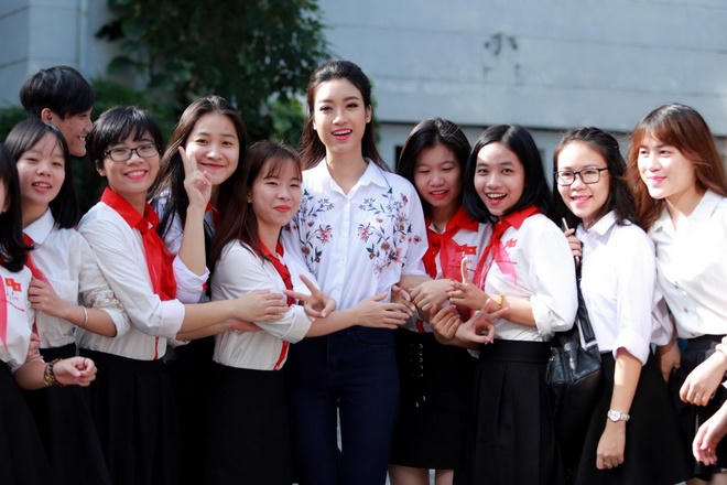 Mỹ Linh chia sẻ: "Dù trở thành Hoa hậu, Linh vẫn là cô sinh viên năm ba và là người học trò nhỏ của các thầy cô. Linh rất vui khi được các thầy cô đối xử bình thường như bao bạn bè khác, vẫn mong được rầy la, nghiêm khắc để hoàn thiện mình mỗi ngày".